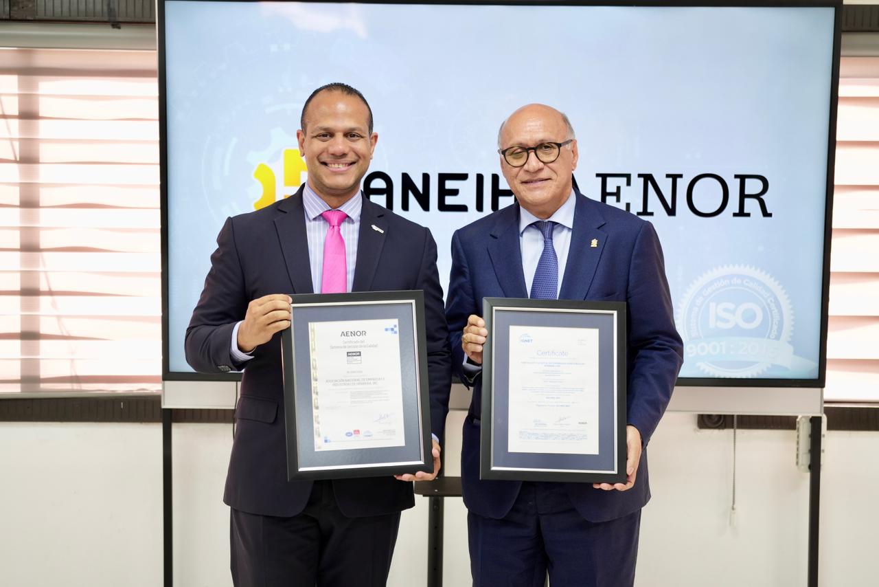 El certificado fue recibido por el presidente de la ANEIH, Ángelo Viro, de manos del director general de AENOR Dominicana, Ariel Espejo Combes. Esta es la segunda vez consecutiva que la entidad obtiene esta certificación; la primera fue otorgada en 2010, convirtiéndose en ese momento en la primera asociación empresarial del país en alcanzar este reconocimiento.